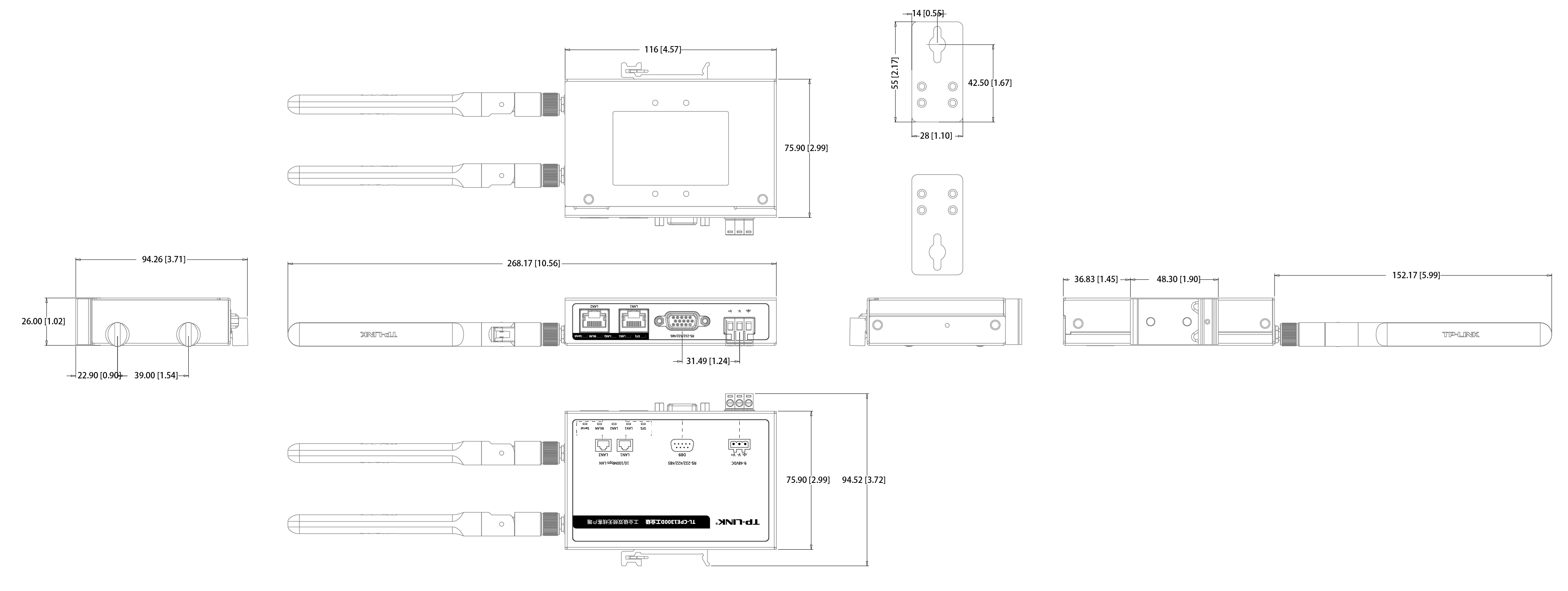| DIN rail clips and wall mounts are provided | |